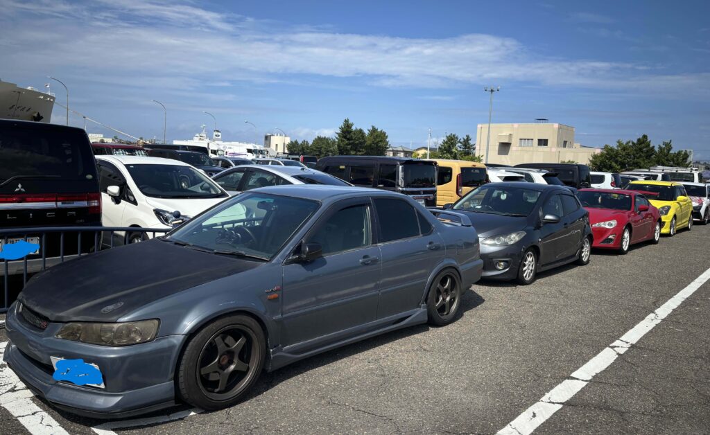 ↑昨年の七大戦、新潟-小樽フェリー乗り場にて低床車列に並べられるシャブカーたち。